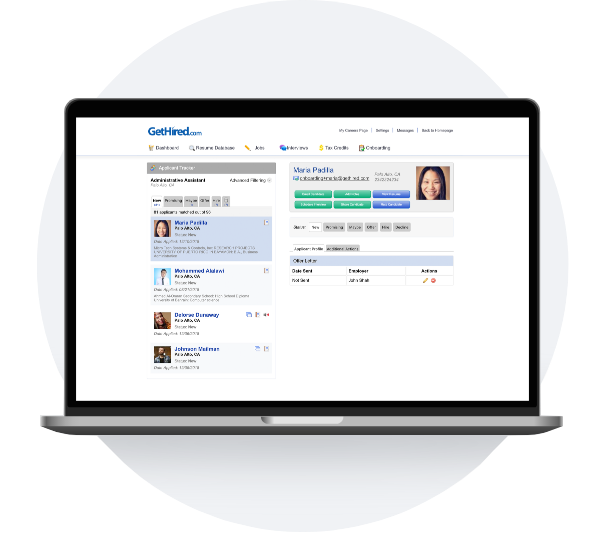 GetHired’s applicant tracking system allows you to quickly create a job posting that can be distributed to the top job boards and social media sites in just a click. You can also add optional pre-screening questions that applicants can respond to through video and audio.